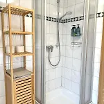 Az 54 m²-es apartman fürdőszobája hajszárítóval és törölközőkkel felszerelt. Továbbá zuhanyzó szintén elérhető.
